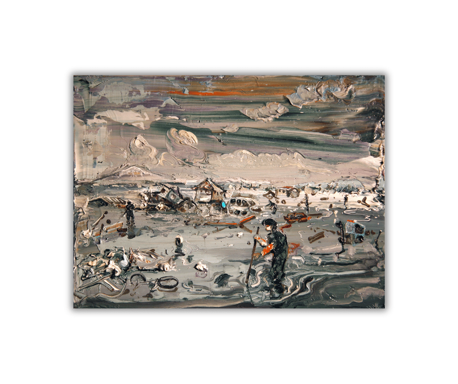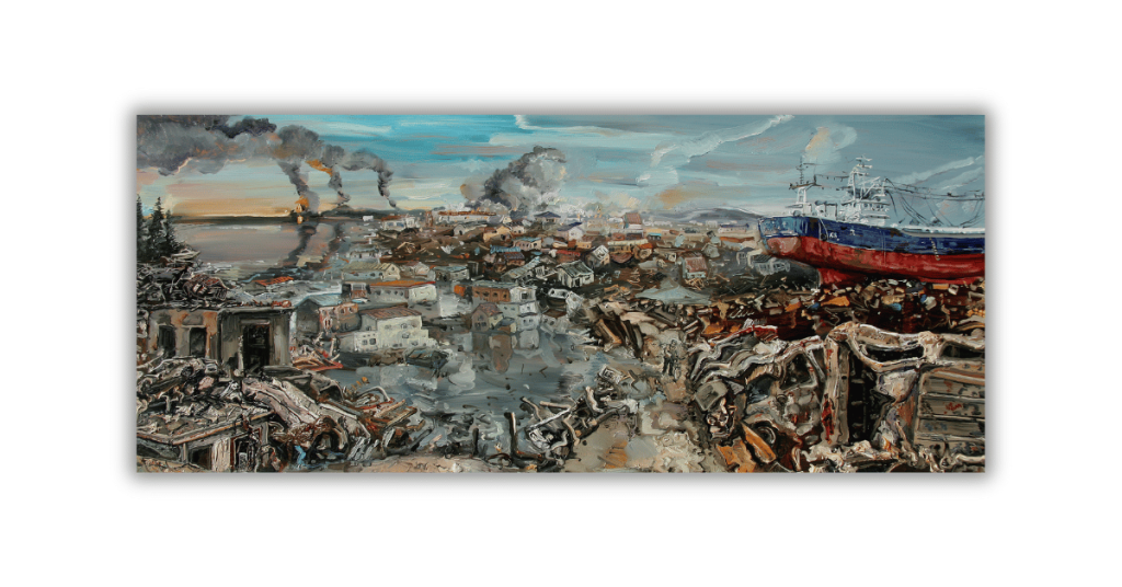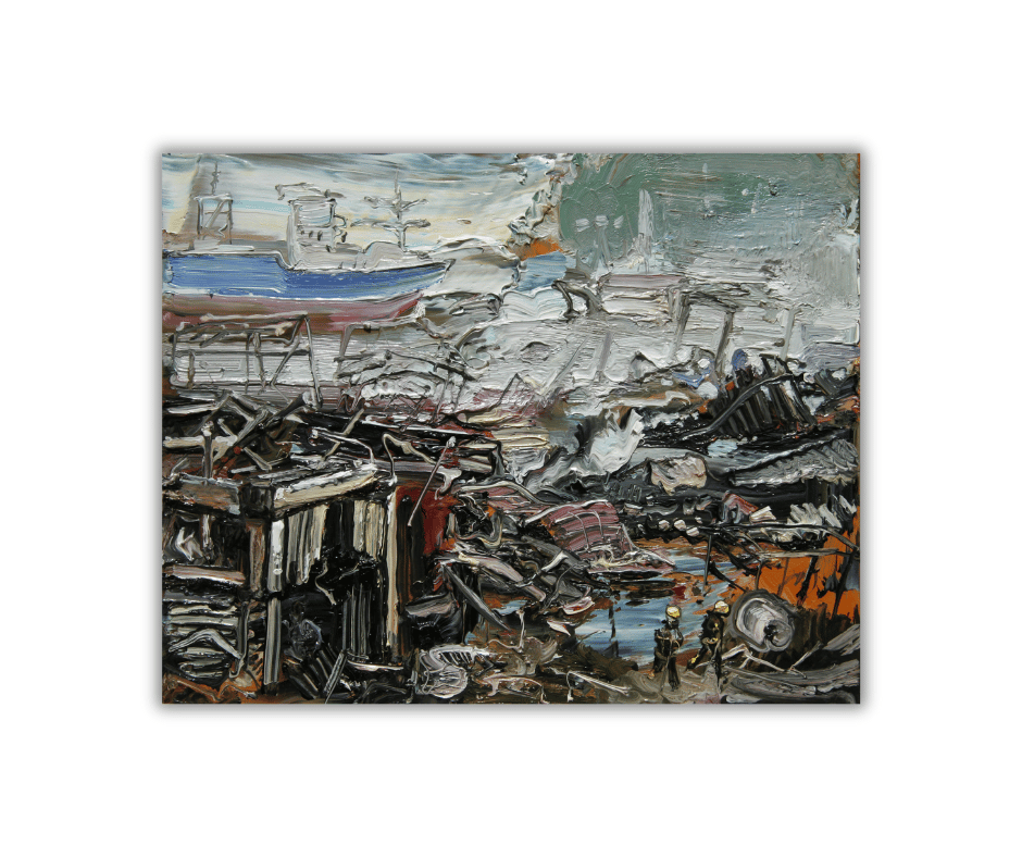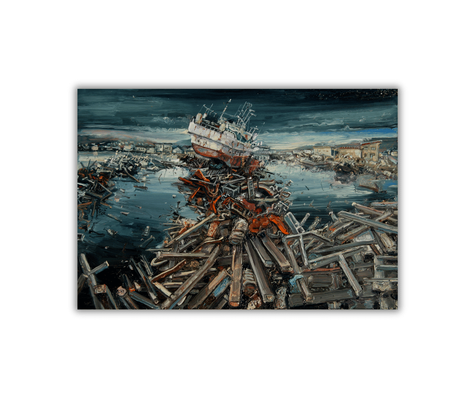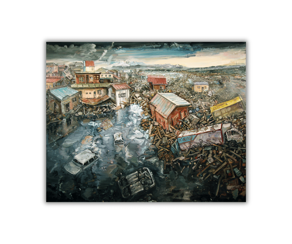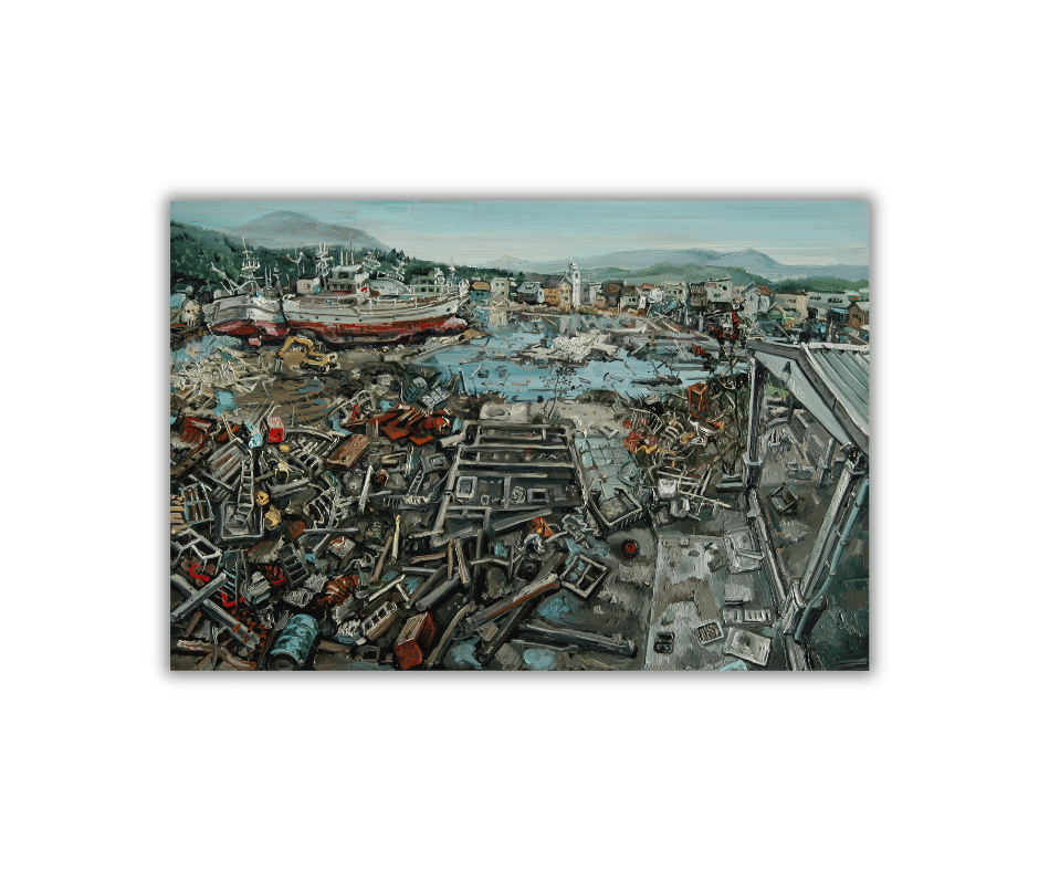 Kada je 2011. godine cunami poharao japanski grad Kesenuma, svet je ostao nem, suočen sa snagom prirode koja briše tragove ljudskog postojanja. Amer Kobašlija je odlučio da ne ostane zarobljen u nemiru, već da kroz umetnost pronađe novi pogled na ruševine. Njegov ciklus slika “100 pogleda na Kesenumu” pretvara tragediju u meditaciju – pogled po pogled, ulje na platnu postaje svedočanstvo o krhkosti, ali i upornosti života. Nagrađen Guggenheim stipendijom 2013. godine, ovaj projekat postao je ne samo umetnički čin, već i most između ličnog i univerzalnog: kako gledamo ruševine, te kako iz njih ponovo učimo da gradimo.
