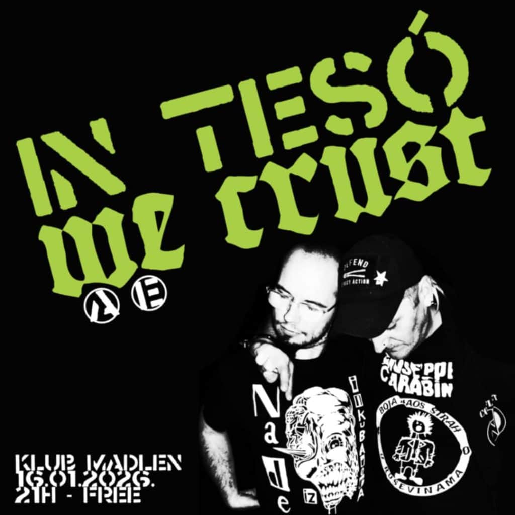 U petak, 16. januara, pankeri i krasteri opet preuzimaju DJ pult. Tikvicki ovaj put ne dolazi sam – tu je i Jani, a kad se udruže dvojica vrištećih kretena iz Barikada, računajte na pojačanu dozu crust/stenchcore lomljave, plus sve ono što ide uz to: brze ruke, sporije sutra i zvuk koji ne pita da li ste spremni.