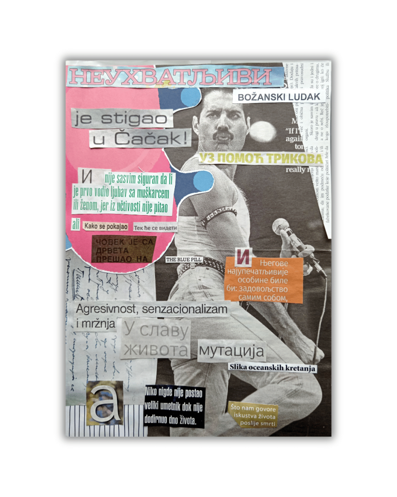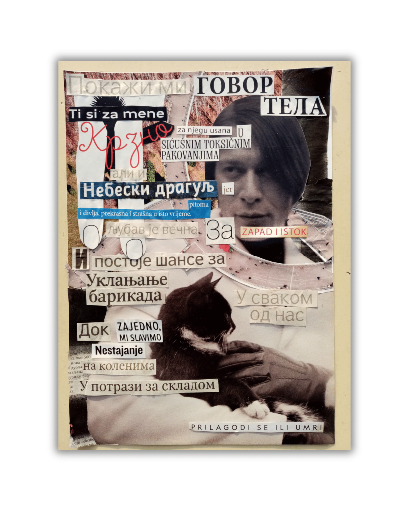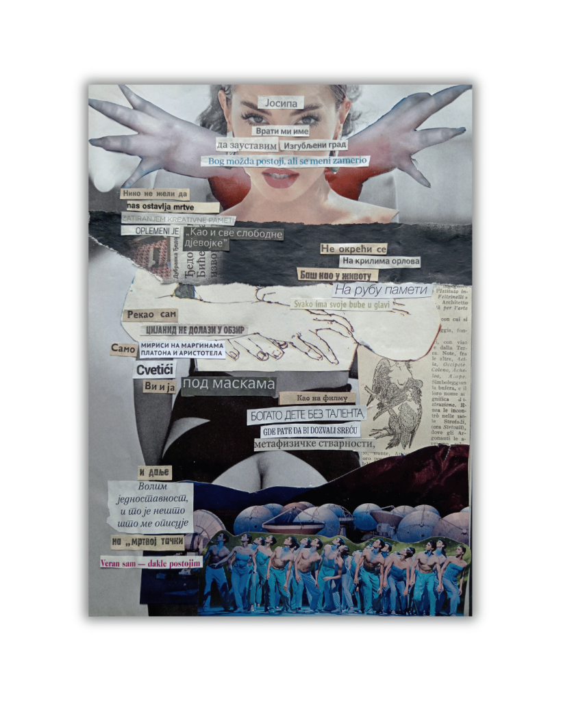 Uroš Papeš razdvaja jezik kao restaurator slojeve boje: precizno, strpljivo, s namerom da otkrije ono što je ispod. Njegovi cut-up radovi seku glatkoću svakodnevice i od isečaka prave nove mape smisla — mozaike satire i lirike, fragmente koji se lepe u celinu tek kad ih pogledamo iz više pravaca. U ovoj virtuelnoj izložbi, reč postaje materijal, papir postaje prostor, a rez — poziv da uđemo dublje: da čujemo tišinu između slogova i vidimo svet koji nastaje kada se misao hrabro prekomponuje.