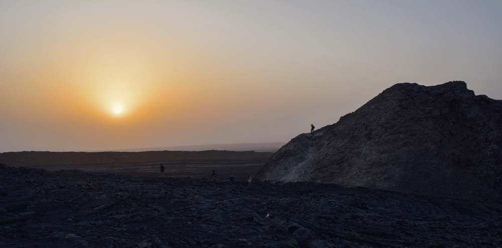 Čitav prizor je magičan, kao dolina Mordor opisana u serijalu „Gospodar prstenova”, prosto bajkovito. Put nas navodi preko polja osušene lave i vožnja je baš uzbudljiva. Poslednjih pola sata provodimo u tišini i upijamo lepotu ovog nesvakidašnjeg prostora. Na kraju vožnje stižemo u podnožje vuklana Erta Ale gde se blago oseti miris sumpora u vazduhu. Nomadsko selo koje se tu nalazi sada je puno mladića sa kamilama, oni će poneti dušeke do vrha planine, jer tamo planiraju da noćimo. Pravimo pauzu pre nastavka ekspedicije, priprema se večera etiopijske kuhinje bogata povrćem. Dok drugi ljudi večeraju hvatam priliku da se presvučem u udobniju garderobu pripremajući se za večernji uspon. Vazduh je težak, iz zemlje izbija toplota nakupljena preko dana. Očaran sam čitavim prizorom ove crne pustinje.